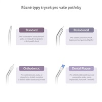 - Orthodontic – Ortodontická tryska pro odstraňování plaku ze zámečků a drátků rovnátek a dalších těžko dostupných míst.