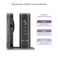 Kartáček nabízí 3 různé čistící režimy (Clean, White, Massage) a 5 úrovní intenzity čištění pro každý z nich.