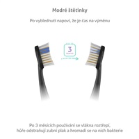 Hlavice disponují modrými štětinkami, které indikují míru opotřebení. Snadno poznáte, že je načase hlavici vyměnit.