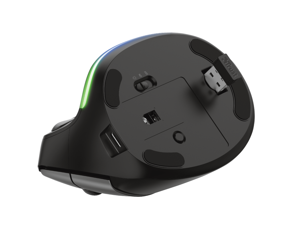 dobíjecí osvětlená myš s ergonomickým vertikálním designem pro