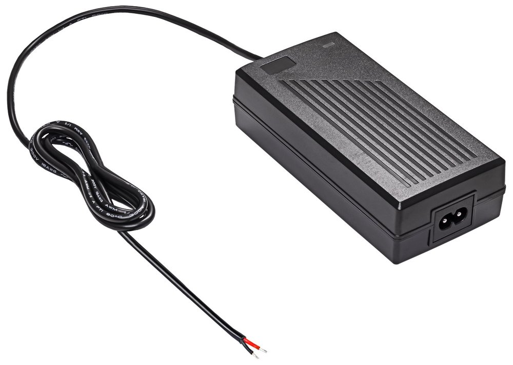 Napájecí adaptér o výkonu 60 W pro elektrokola a elektrokoloběžky s 24V baterií. Na jedné straně má oblíbenou zásuvku IEC C8 a na druhé straně kabel bez zakončení, který umožňuje svobodu výběru konektoru v závislosti na nabíjeném zařízení. Přívodní síťový napájecí kabel není součástí balení.