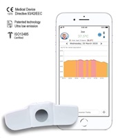Pro maximální omezení vyzařování je TUCKY vybaven technologií „Bluetooth Low Energy“ s dosahem až do vzdálenosti 10 metrů (v závislosti na překážkách). Pokud se nacházíte mimo tento rozsah, záznam měření teploty se synchronizuje v certifikovaném zdravotnickém „cloudu“, což vám umožní bezpečný přístup k vašim datům v reálném čase a uchová v paměti všechny dosavadní měření. Při použití druhého zařízení s Bluetooth je dosah neomezený, kdy se v místnosti, nebo v dosahu ponechá jedno smart zařízení pro přenos dat do aplikace přes cloud. Přes druhé smart zařízení (smartphone, tablet) následně budete moct monitorovat teplotu na prakticky neomezenou vzdálenost. Vyzařovaní vln je cca 1000x nižší než u smartphonu, nebo 250x nižší než u běžné dětské chůvičky.