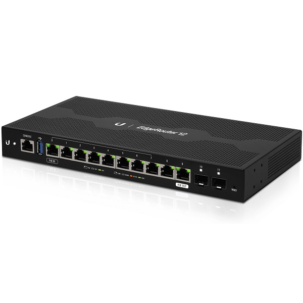 EdgeRouter 12 má deset Gbit ethernetových portů a 2 SFP