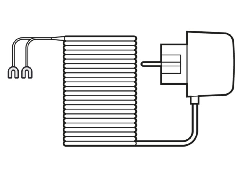Místo použití stávajícího elektrického vedení se jeden konec připojuje ke zvonku a druhý konec do standardní elektrické zásuvky EU. Maximální vzdálenost je 6 m.