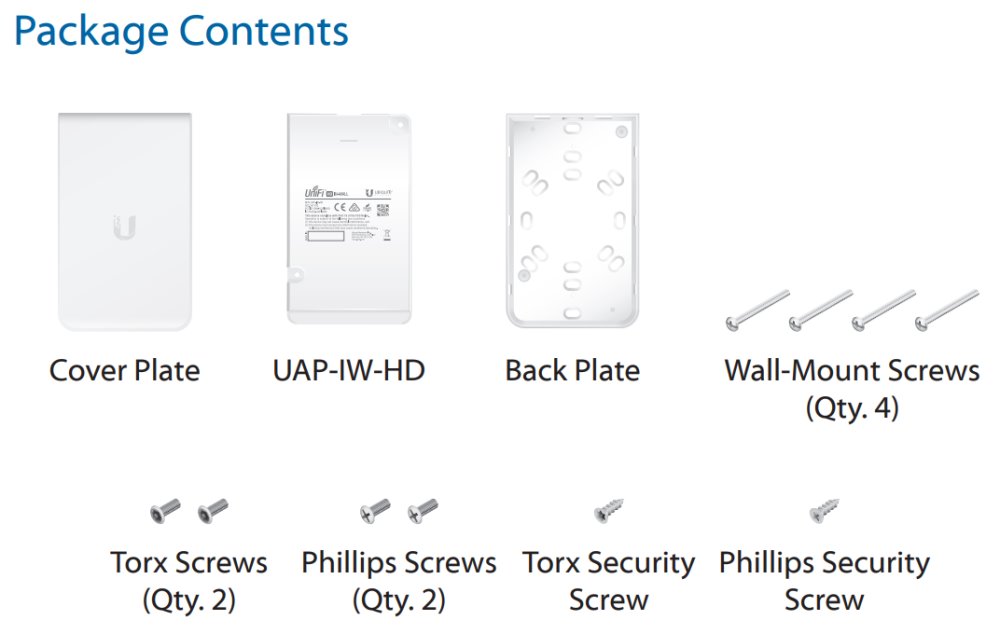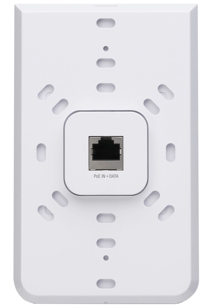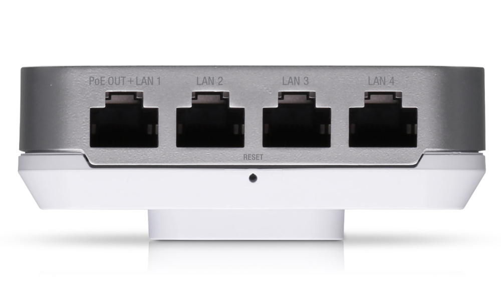 UniFi HD In-Wall má integrované 1,8 dBi antény (2,4 GHz) a 3,4 dBi antény (5 GHz) a navíc 5 Gigabitových RJ45 portů.