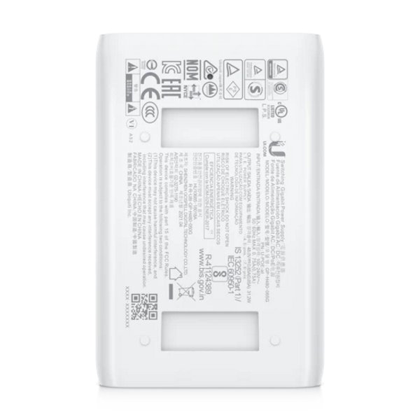 PoE injektor pro napájení po Ethernetovém kabelu, standard IEEE 802.3at PoE+ do příkonu až 30 W. Lze jej použít k napájení libovolného přístupového bodu U6 (U6-LR, U6-Lite, U6-Pro). Samozřejmostí je integrovaná přepěťová ochrana.