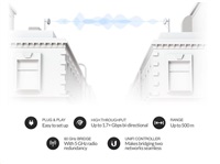 UniFi Building Bridge je 60GHz point-to-point pojítko s 5GHz zálohou pro rozšíření sítě například o sousední budovu. Propustnost pojítka je 1.7Gbps+ s maximálním dosahem 500m a správou nebo monitoringem přes UniFi Controller.