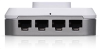 Zařízení je vybaveno také ethernetovým switchem, na spodní straně naleznete 4 Gigabitové ethernety, kdy na prvním portu je možné využít funkci PoE passthough. 1 přívodní Gigabitový port pak naleznete na zadní straně zabudované do zdi.