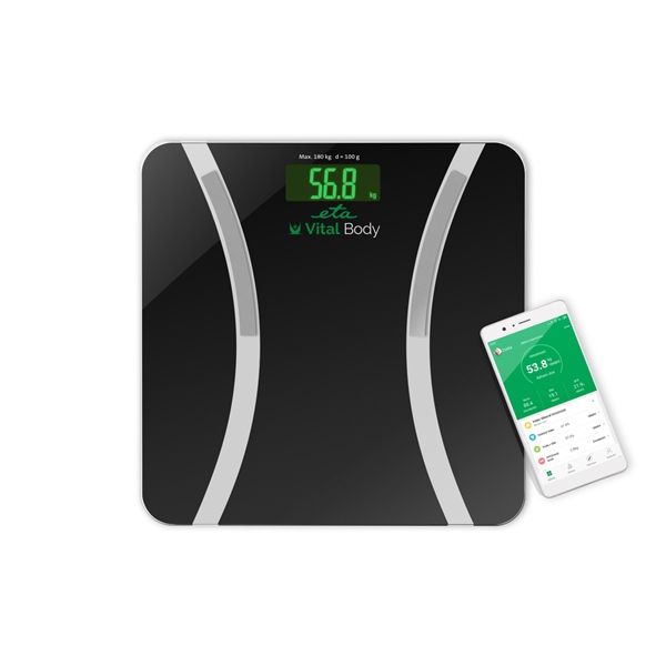 Na první pohled byste možná nepoznali rozdíl od ostatních osobních vah. Když však digitální váhu ETA Vital Body skamarádíte s těmi správnými parťáky, nebudete se stačit divit. Díky unikátní smart aplikaci Vital Body Plus si bude perfektně rozumět nejen s vaším mobilním telefonem, ale i s dalšími aplikacemi jiných chytrých zařízení, jako jsou třeba v dnešní době tolik oblíbené chytré či sportovní hodinky.