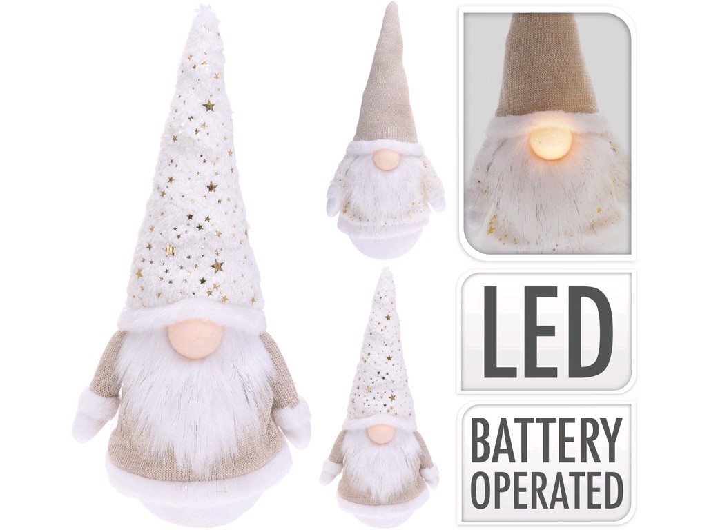 Vyzdobte si svůj domov vánočními dekoracemi. Veselá postava vousatého zachumlaného skřítka doplní vaši poličku, stůl či skříňku a vyvolá sváteční atmosféru. Postavička jistě potěší dospělé i děti a stane se originální ozdobou vaší domácnosti. Nos skřítka svítí teplým žlutým světlem díky LED diodě, protože světýlek není na svátky nikdy dost. Zkrášlete si obývací pokoj, kuchyň, ložnici nebo dětský pokojíček a užijte si Vánoce naplno.