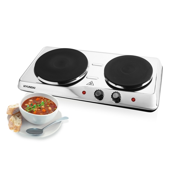 Elektrický vařič Hyundai EP 310 je ideální na chalupu, chatu, nebo do menší kuchyně. Má dvě litinové plotny o průměru 18,5 a 15,5 cm. Obě plotny mají vlastní regulovatelný termostat pro nastavení požadované teploty. Obsahuje světelné kontrolky provozu, které po dosažení teploty zhasnou.