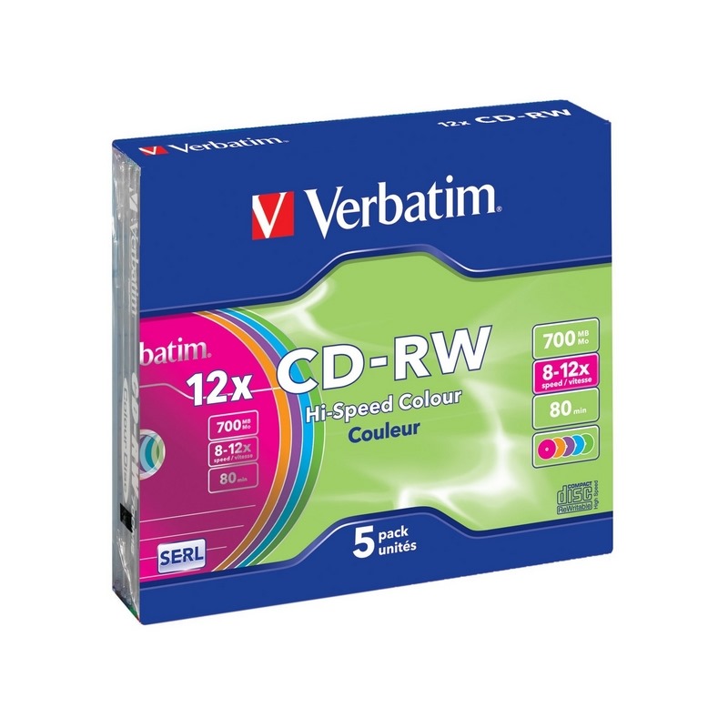 Product description CD-RW 700MB 8-12X 5PK COLOUR SLIM VERBATIM