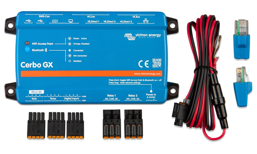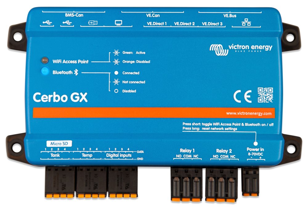 VE.Direct, 3 porty USB, 4 digitálními vstupy a 2 relé posunují
