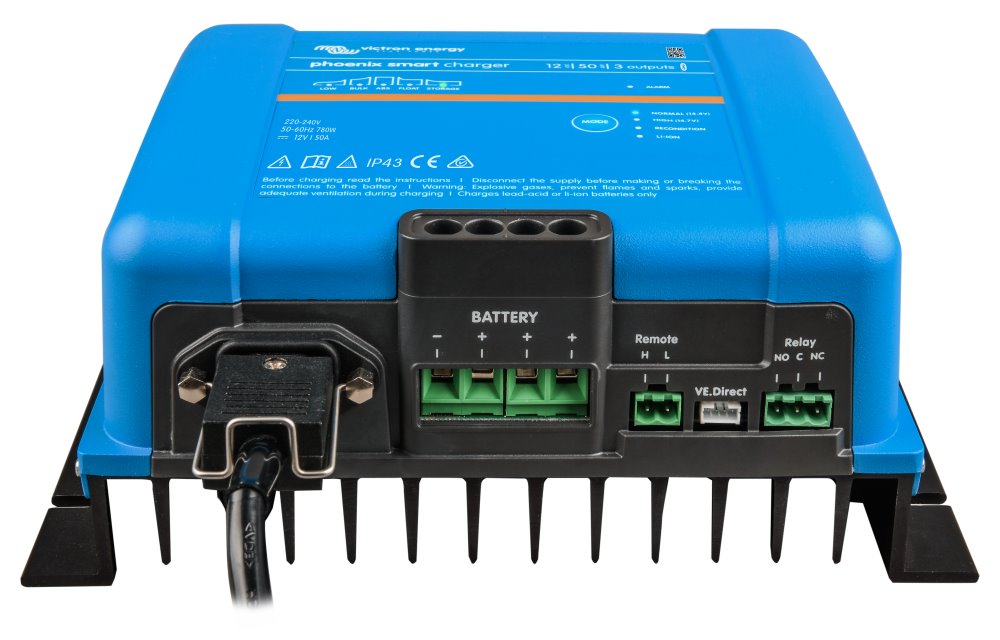 Inteligentní, výkonná a programovatelná nabíječka pro všechny druhy olověných baterií a Li-Ion (LiFePO4) baterie. Kabely pro připojení k baterii a napájecí kabel (IEC 320 C14) nejsou součástí balení.