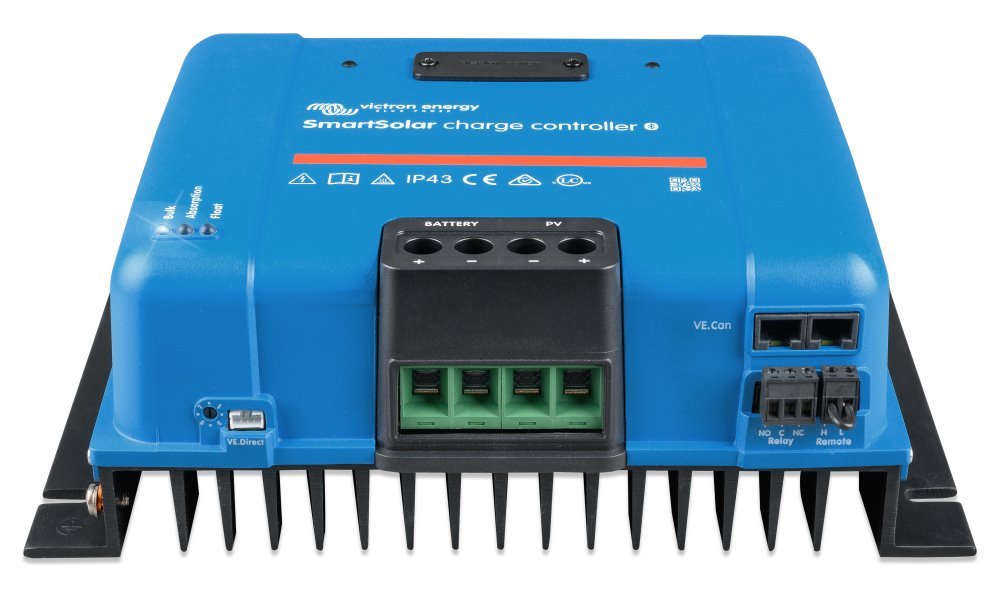 Robustní a rychlý MPPT regulátor s VE.Can pro náročné podmínky s napětím panelů až 250 V, nabíjecí proud 85 A. Baterie 12/24/48 V, FV max. 1200/2400/4900 Wp. Vestavěné Bluetooth a konektor pro zásuvný displej.