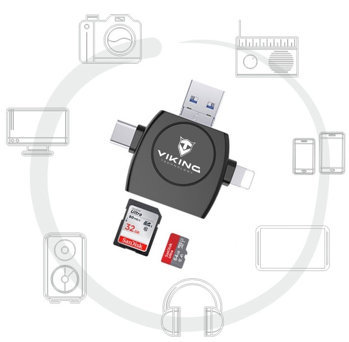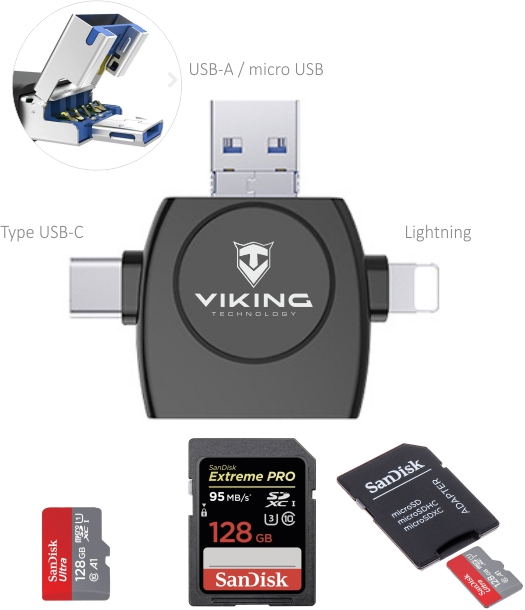 VIKING ČTEČKA PAMĚŤOVÝCH KARET V4 USD3.0 4v1 S KONCOVKOU APPLE