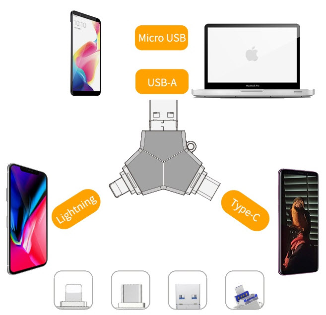 LIGHTNING / MICRO USB / USB-C / USB 3.0 s interní pamětí 128GB.