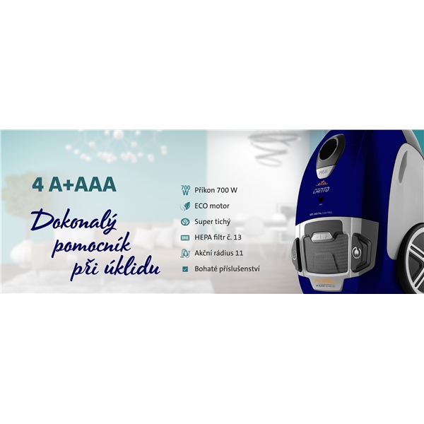 - Vysavač dosahuje hodnocení ETA A+AAA (A+ - třída na tvrdých