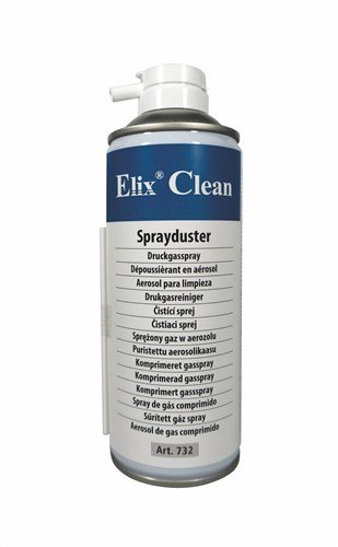 Sprej se stlačeným vzduchem ELIX vám usnadní čištění těžko přístupných míst. Rychle a bezpečně odstraníte prach. Nezanechává zbytky a nepoškodí běžný materiál. Obsahuje propan-butan a neničí ozon. Jelikož se jedná o hořlavý plyn, nepoužívejte ho na horké plochy, zboží ve výrobě nebo spuštěná zařízení.