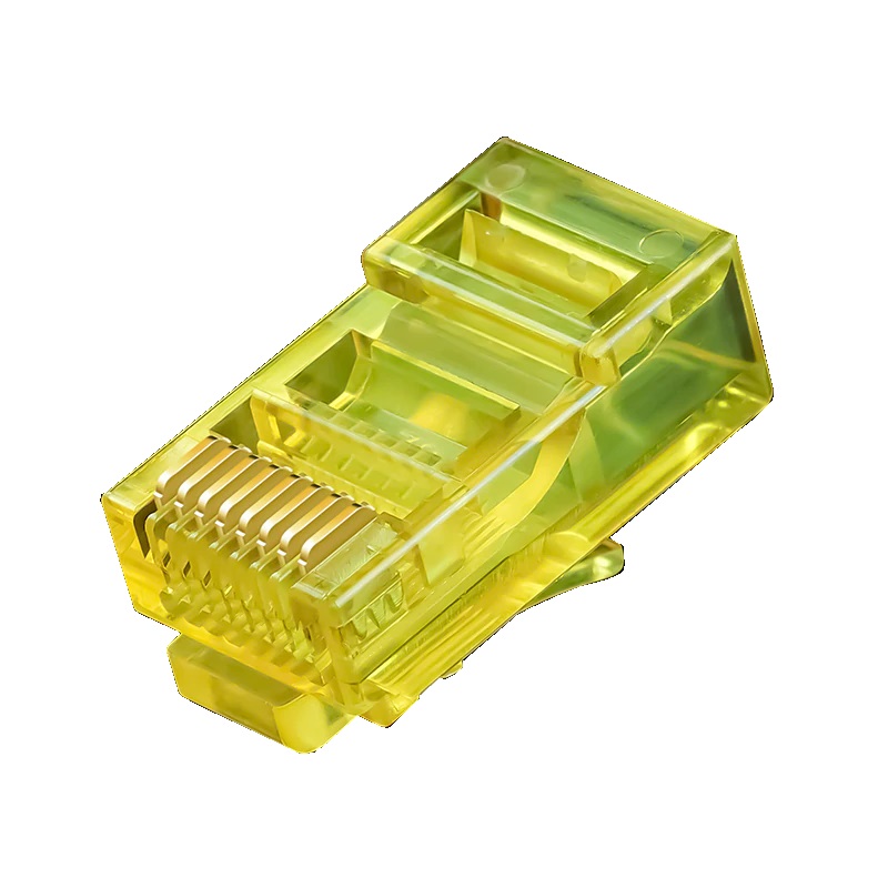 Barevná - průhledná žlutá - koncovka (konektor) RJ45, určená pro Cat5e - lanko/licna. Možno použít i na drát, konektor typu 8P8C (8 pozici a 8 kontaktů). Cena je za 10 ks.