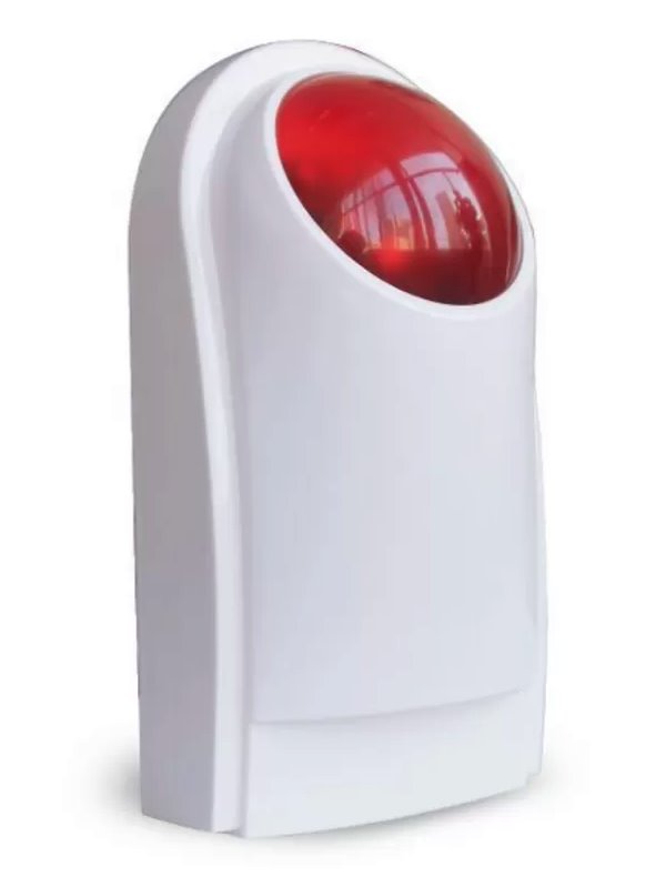 Bezdrátová vnitřní 120-130 dB siréna se světelnou signalizací. Přenosová frekvence 433 MHz (dosah 200-300 m). Zařízení může fungovat jako samostatný poplachový systém nebo bezdrátová siréna.