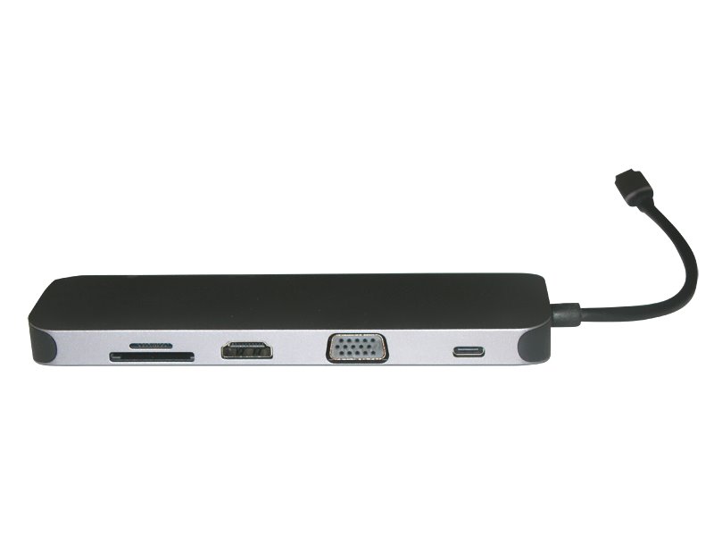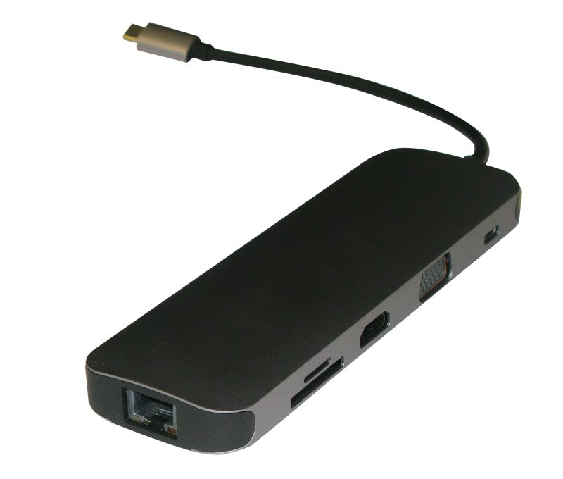 Dokovací stanice nabízející velké množství praktických portů. Připojení k počítači je realizováno skrze USB typ C, který slouží jak k přenosu dat, tak napájení připojeného zařízení. K dokovací stanici lze připojit monitory skrze rozhraní HDMI s maximálním rozlišením až 3840 x 2160 obrazových bodů případně VGA port. Vysokorychlostní přístup k síti a internetu lze realizovat skrze přítomný RJ-45 port. Pro připojení periférií disponuje dokovací stanice třemi USB 3.0 porty a jedním USB typ C portem s podporu technologie Power Delivery a slouží tak pro nabíjení notebooku, tabletu nebo smartphonu. Mimo to je k dispozici i čtečka SD a microSD karet a 3,5 mm audio jack pro připojení sluchátek.