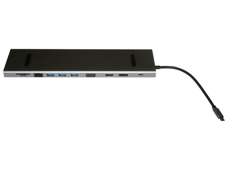Dokovací stanice nabízející velké množství praktických portů. Připojení k počítači je realizováno skrze USB typ C, který slouží jak k přenosu dat, tak napájení připojeného zařízení. K dokovací stanici lze připojit monitory skrze rozhraní HDMI a DisplayPort s maximálním rozlišením až 3840 x 2160 obrazových bodů případně VGA s rozlišením až 1920 x 1080. Vysokorychlostní přístup k síti a internetu lze realizovat skrze přítomný RJ-45 port. Pro připojení periférií disponuje dokovací stanice třemi USB 3.0 porty a jedním USB typ C portem s podporu technologie Power Delivery a slouží tak pro nabíjení notebooku, tabletu nebo smartphonu. Mimo to je k dispozici i čtečka SD a microSD karet a 3,5 mm audio jack pro připojení sluchátek.
