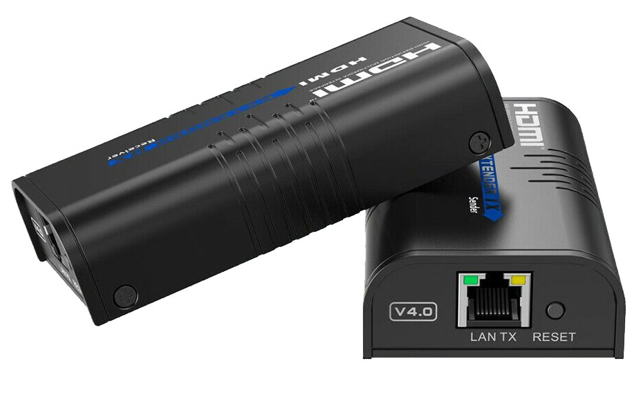 Pár jednotek vysílač a přijímač, které dovolují přenos HDMI videa