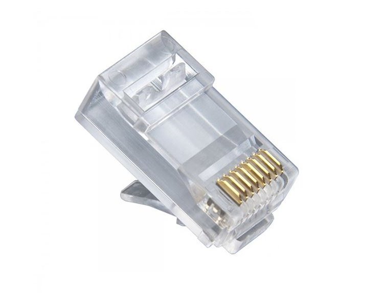Konektor RJ-45 CAT5E, pro kabel lanko. Možno požívat i na drát.