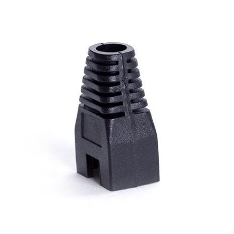 Gumová krytka pro profesionálnější zakonektorování konektoru RJ45 s výřezem. Chrání konektor před poškozením a prašností. Její instalace nezpůsobuje překrytí konektoru jako u běžných krytek. Kabel získá podobu strojově lisovaných kabelů.