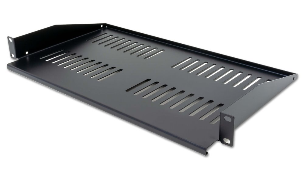 Univerzální police 280 mm určená pro montáž do libovolných 19" rozvaděčů.