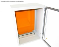 Rozvaděč je vyroben z válcované oceli o tloušťce 1,5 mm.