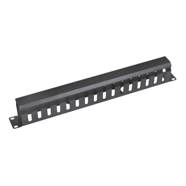 Celokovový vyvazovací panel vhodný pro volné uchycení velkého množství kabelů. Vyráběn je ve variantě 1U a je vybaven krytem kabelů.