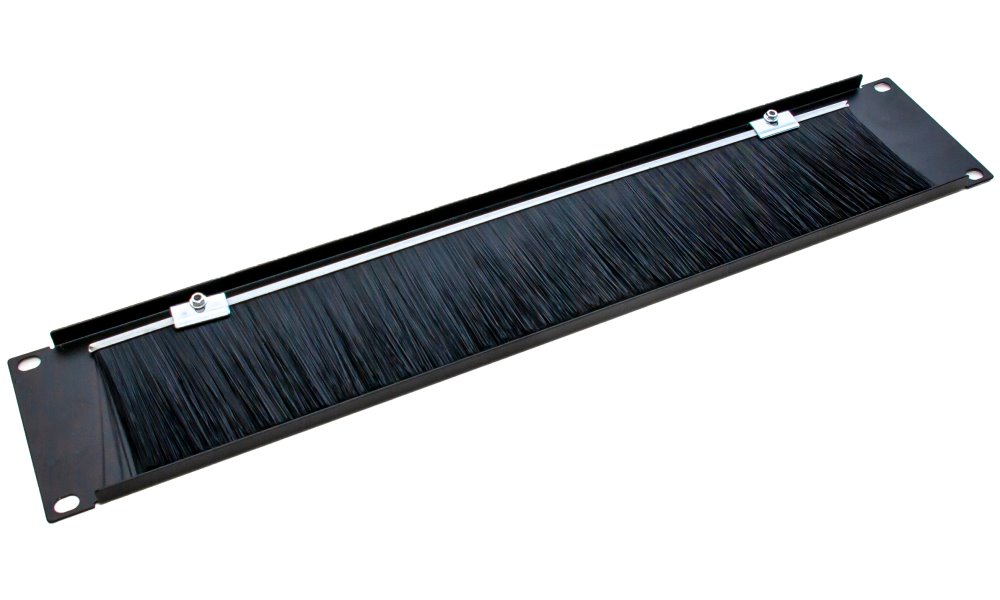Vyvazovací panel s kartáčem ve variantě 2U. Vhodný pro volné uchycení kabelů.