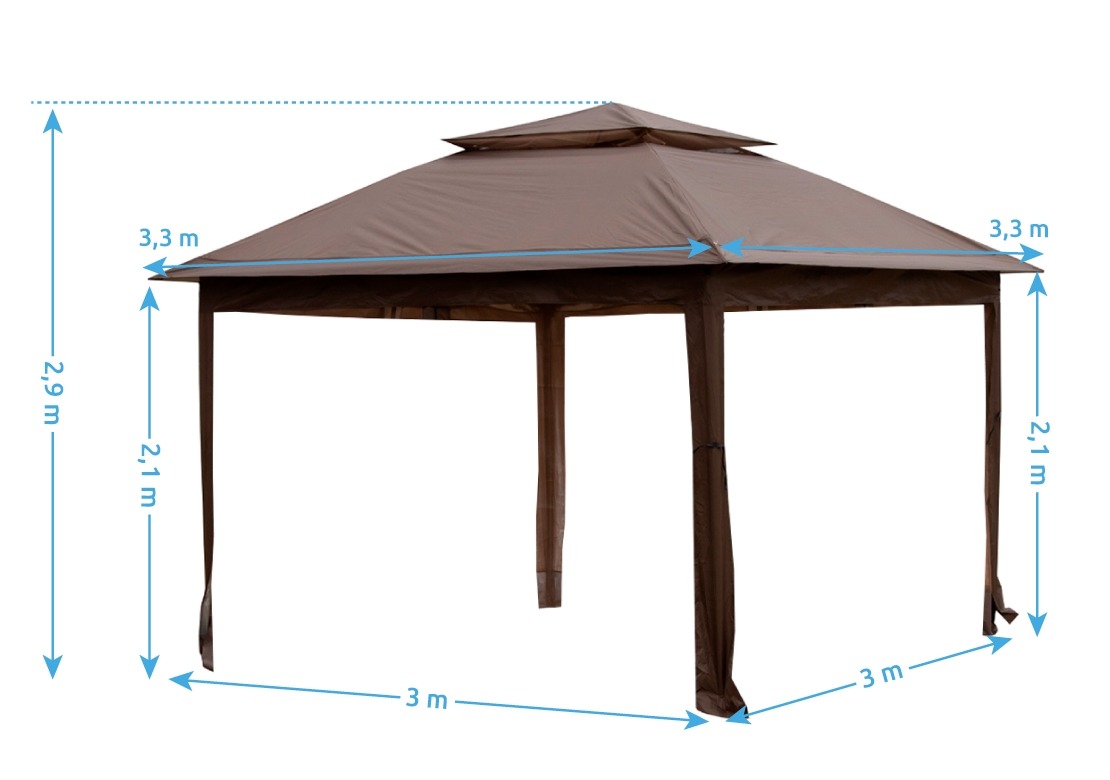 Stavba altánu je opravdu jednoduchá. Stačí, když roztáhnete ocelový rám a potáhnete konstrukci textilní plachtou. Rám uzamknete zatlačením na ovládací systém. Výšku a úhel zastínění si upravíte podle potřeby. Stěny altánu můžete úplně zatáhnout a uzavřít, případně ponecháte otevřený pouze vchod. Pokud stěny chcete nechat otevřené, snadno je připevníte k nohám altánu.