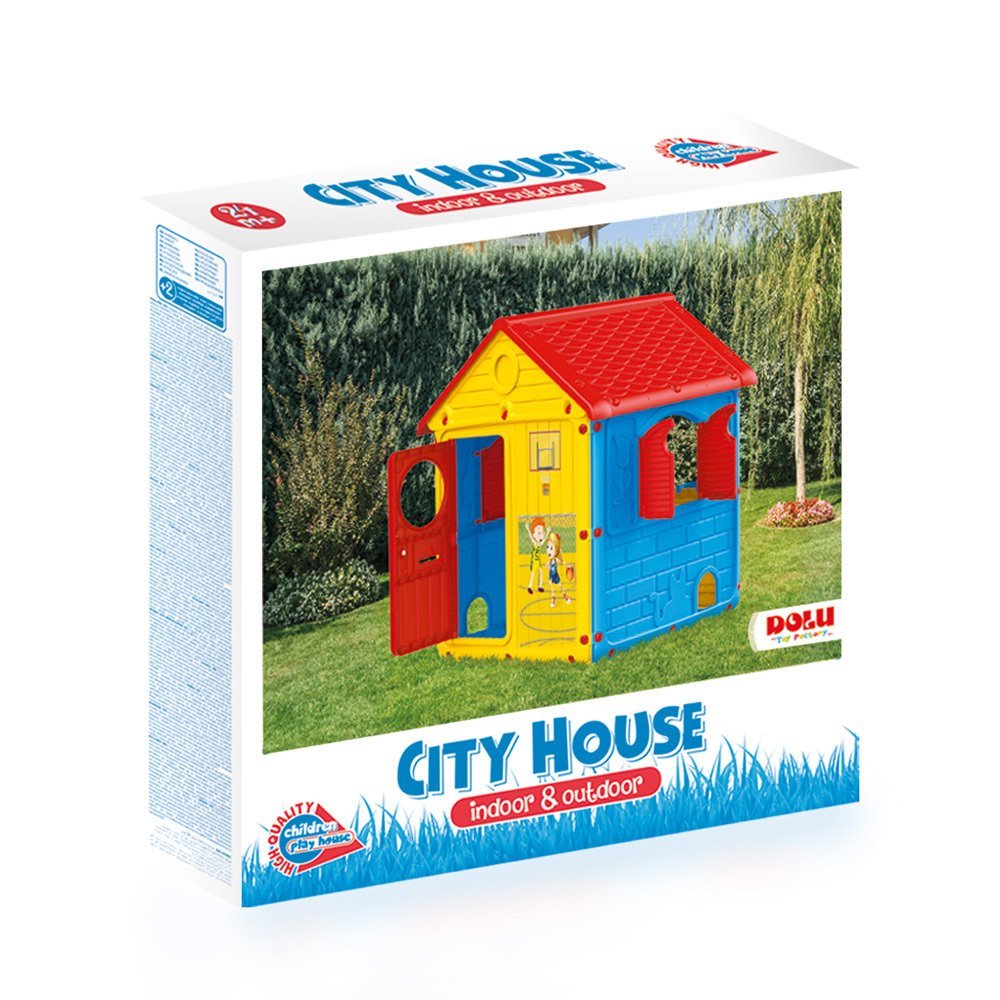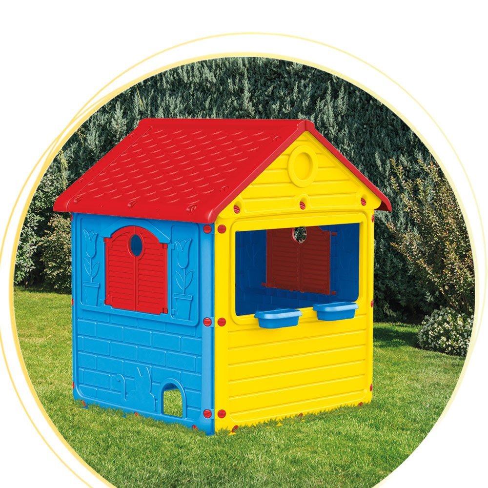 Zahradní domeček s okenicemi značky Dolu bude skvělou zábavou dětem nejen na zahradě. Krásné barevné provedení – kombinace modré, žluté a červené barvy je vhodná pro kluky i holky. Dobrodružství může začít! Vhodný pro vnitřní i venkovní použití. Domeček má na vchodových dveřích zvonek a kulaté okno, kterým si děti zkontrolují návštěvu, než jí pustí dovnitř. Ve stěnách domečku jsou 2 vstupy pro domácího mazlíčka. Na okně jsou zavěšeny 2 truhlíky na květiny. Vysoká kvalita použitého materiálu a jednoduchá montáž vás nadchne.