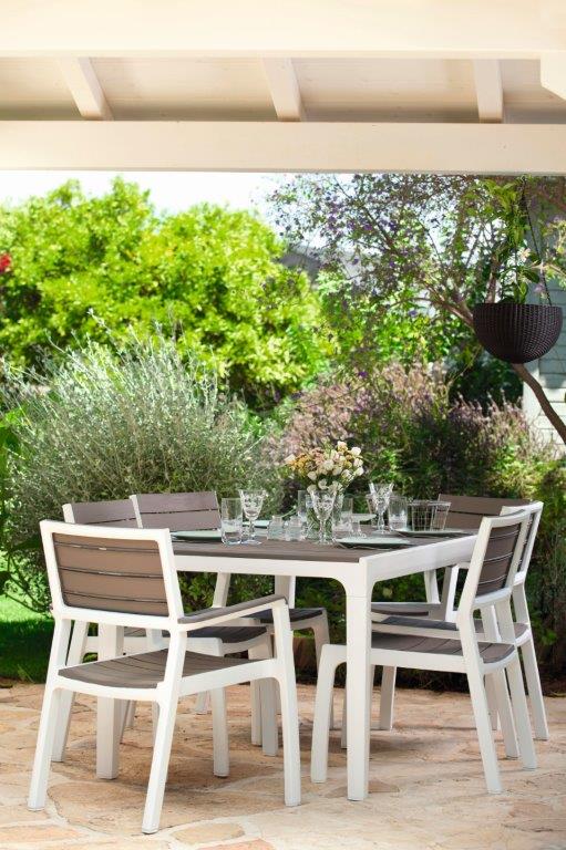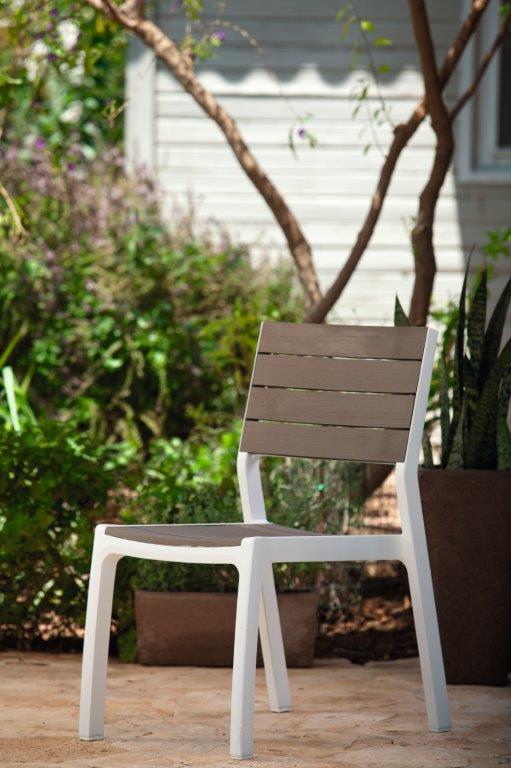 Zahradní židle Keter Harmony vás nadchne svým subtilním vzhledem a stylovým designem z umělé pryskyřice, která imituje strukturu přírodního dřeva. Navíc tento materiál propůjčuje židli extrémní odolnost vůči povětrnostním vlivům a UV záření, takže spolehlivě vydrží běžné zatížení při venkovním provozu. Cappuccinovo-bílá židle perfektně doplní stůl Harmony ze stejné kolekce, ke kterému se vejde až 6 těchto židlí. Zejména však oceníte její stohovatelný design, který vám maximálně ušetří prostor, čas i námahu. Velkou výhodou je, že se obejdete bez jakékoliv montáže, jelikož se tato židle dodává již složená a je tak připravená k okamžitému použití ihned po vybalení.