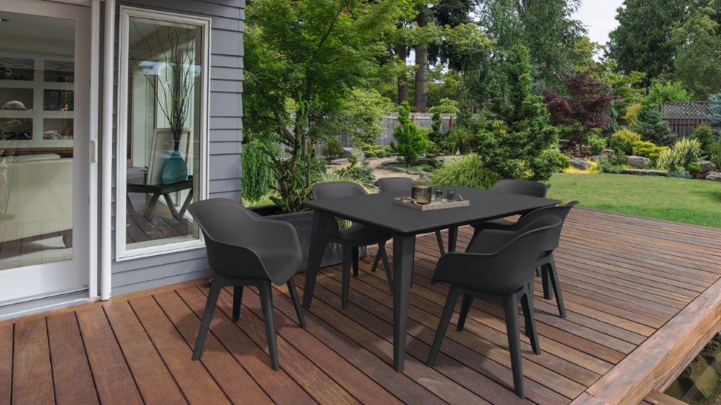 Použitý lisovaný plast imituje vzhled přírodního dřeva a poskytne stolu výjimečnou odolnost vůči různorodým vlivům, jako je například mechanické opotřebení, voda, vlhkost, hniloba a rez či UV záření. Díky vysoké stálosti barev se tak nikdy nestane, že by se stůl na přímém slunečním svitu začal loupat nebo blednout, což značně prodlouží jeho životnost. Sestavení stolu je pak velice snadné, kdy k montáži není potřeba žádné speciální nářadí.