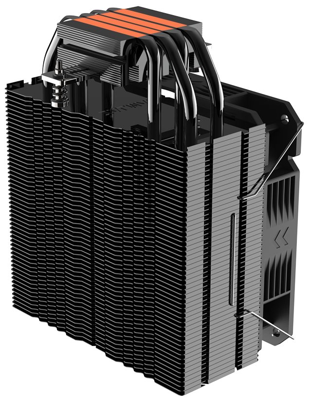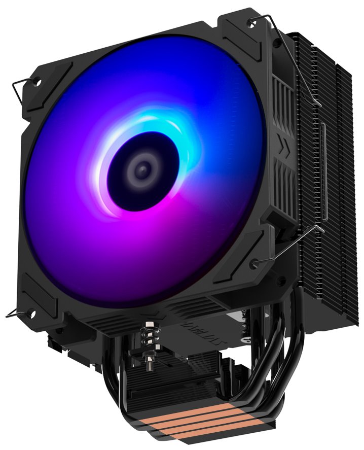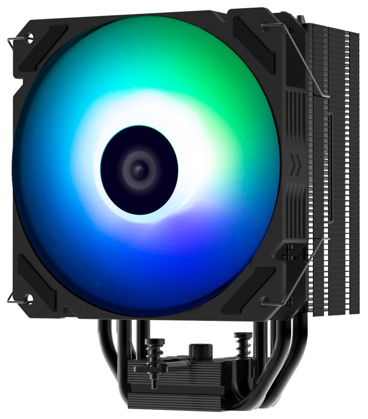 Chladič je vybaven 120 mm velkým ventilátorem s PWM regulací, ARGB podsvícením a čtveřicí heatpipe. K připojení slouží 4-pin PWM konektor a 3-pin ARGB konektor.