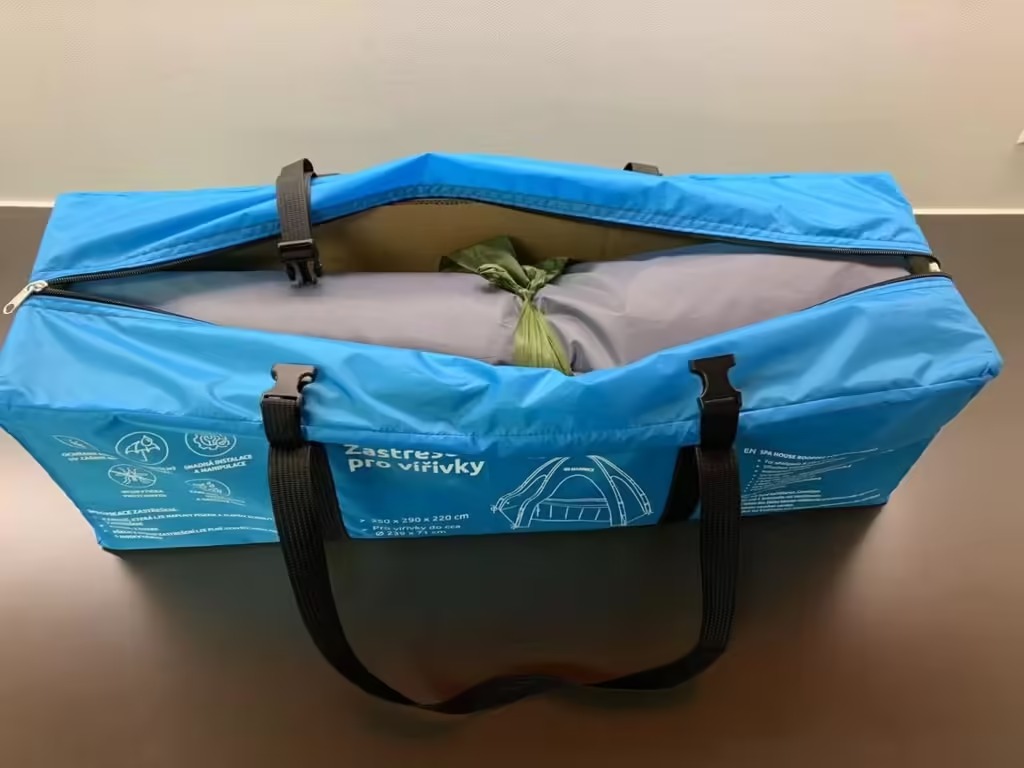 Zastřešení je vyrobené z voděodolného materiálu. Nepropustí dešťovou vodu či nečistoty. Přístřešek snadno nainstalujete k vířivce. Jen roztáhnete rám a natáhnete na něj plášť. Součástí balení je také závaží, které naplníte pískem. Zajistíte si lepší stabilitu zastřešení.