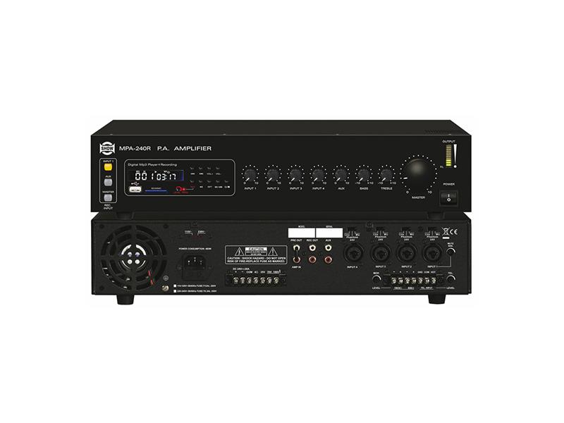 zesilovač 240 W s mixážním pultem, modulem BGM MP3-400 MP3