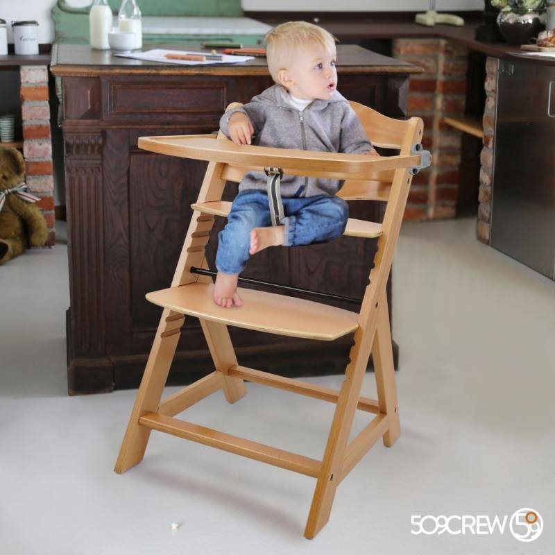 Pořiďte svému dítěti vysokou jídelní židli s tácem od značky Five O Nine Crew, která s ním bude růst. Jakmile váš potomek povyroste, odstraníte z ní tác, bezpečnostní popruh a přední tyč, která funguje jako zábrana před pádem. Předěláte ji tak na obyčejnou židli pro dospělé.