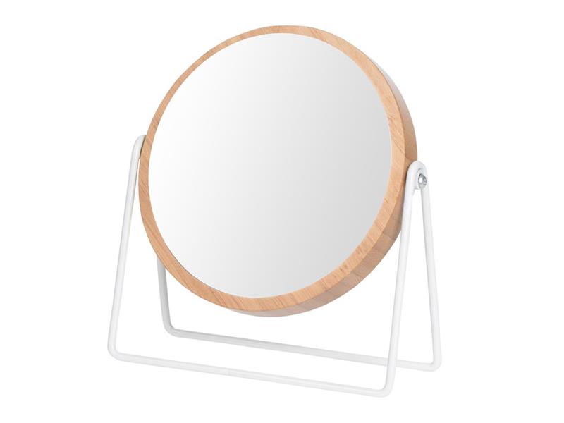 Zrcadlo na stojánku je oboustranné, jedna strana 2x zvětšuje obraz. Usnadní ranní líčení i jiné kosmetické úpravy obličeje. Vlastnosti: - Materiál: kov, bambusové dřevo - Rozměry: pr. 17 cm, v. 21 cm