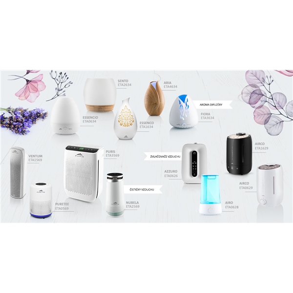 Zvlhčovač vzduchu ETA Airo pomocí ultrazvukové technologie efektivně zvlhčí vzduch v místnostech až do rozlohy 30 m2. Stačí jen naplnit čtyřlitrovou nádobu vodou – možnosti volně se nadechnout si pak můžete užívat až 13 hodin.